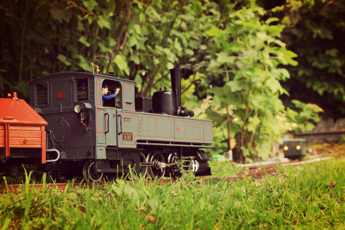 Seit 2015 habe ich meine Philosophie, eine Gartenbahn zu betreiben als 'Natur und Gartenbahn' zusammengefasst. F�r mich geh�rt es zu einer Gartenbahn dazu, der Natur ihren Raum zu lassen. Es gilt die Bahn der Natur anzupassen nicht umgekehrt. So f�hrt die Strecke unter dem Apfelbaum und Ribiselstr�uchern hindurch, an Efeu und Holler vorbei und durch gr�ne Wiesen hindurch. Die Betonierten Fl�chen sind klein gew�hlt, Kunstrasen gibt es nicht. Mann muss G�rtner und Modellbauer in einem sein. Auch wenn diese Art eine Gartenbahn zu betreiben einen enormen Mehraufwand bedeutet, besitzt es doch auch ein gewisses Flair, das die Arbeit entlohnt.